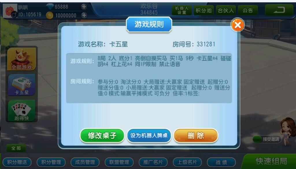 首发欢乐谷卡五星棋牌源码/跑得快/智能陪玩机器人/大联盟俱乐部自动抽水