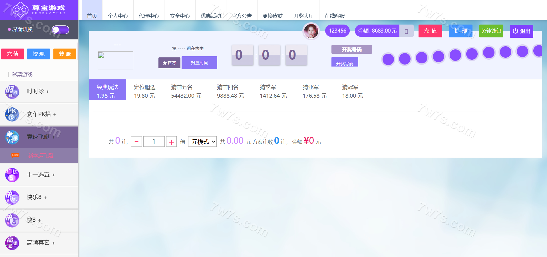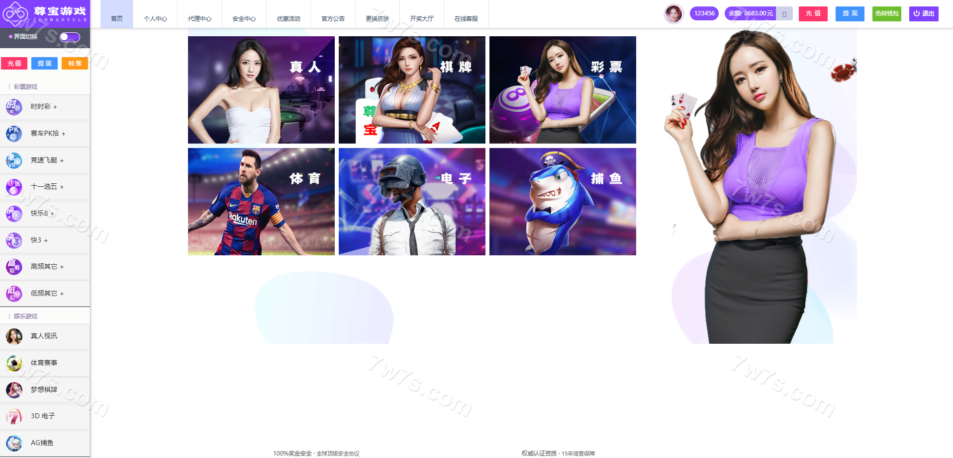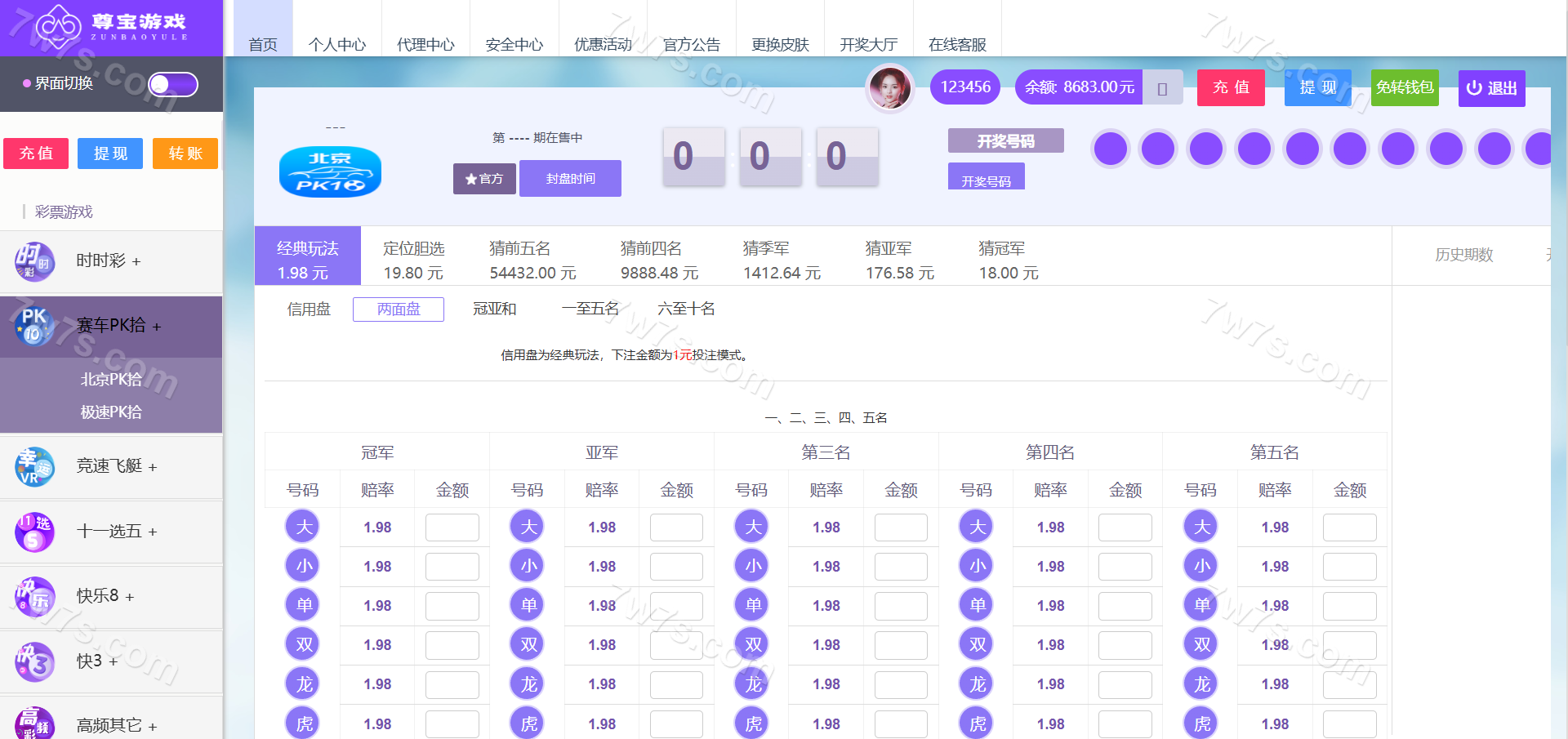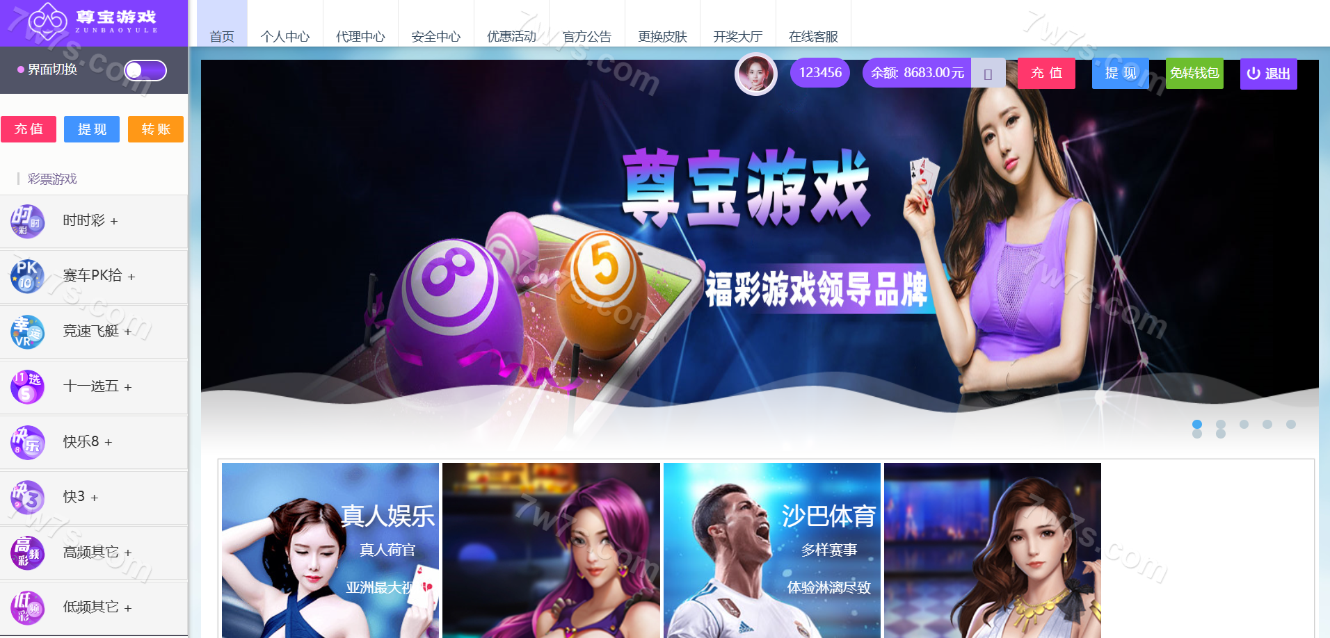 大富彩票尊宝娱乐整站,带真人娱乐/带手机版自适应 信用盘/双面盘玩法,后台支持自动风控/添加彩种/玩法/预设开奖/控制/改单 TP框架 PHP语言 全开源可二次开发时时彩源码 本站所有源码都是站长亲测过才上架的,放心购买下载,本站针对会员提供免费搭建服务!