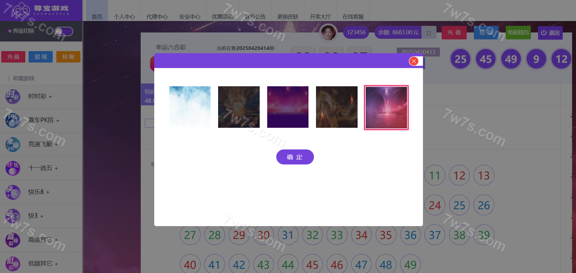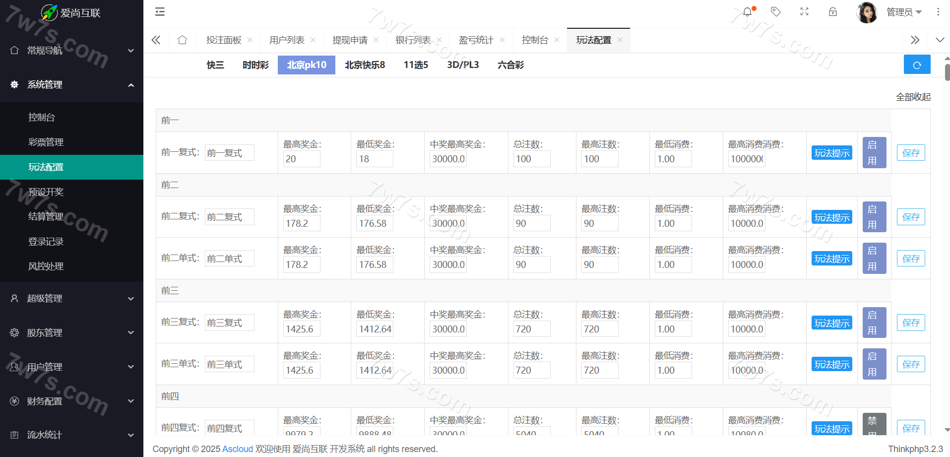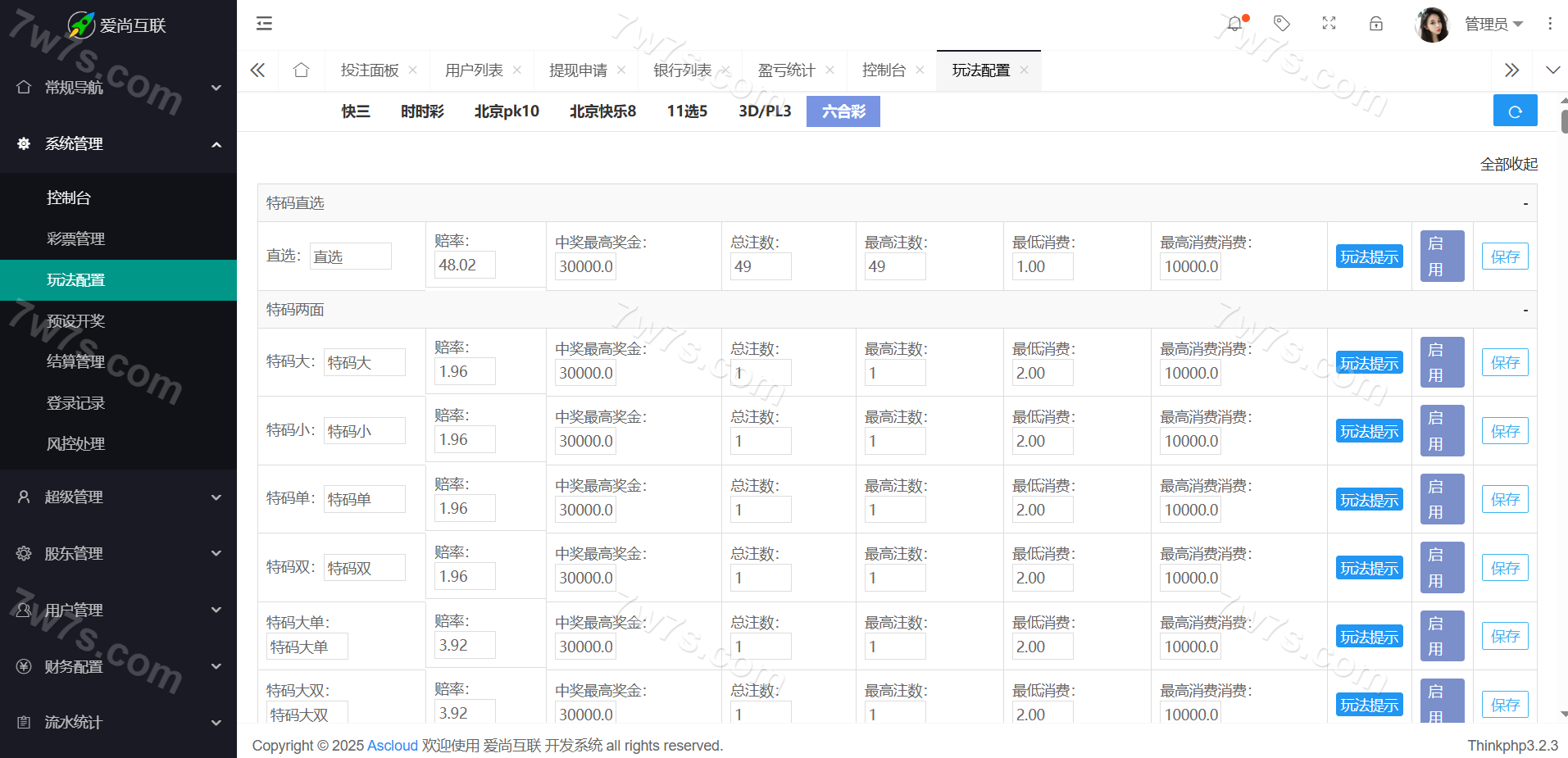 大富彩票尊宝娱乐整站,带真人娱乐/带手机版自适应 信用盘/双面盘玩法,后台支持自动风控/添加彩种/玩法/预设开奖/控制/改单 TP框架 PHP语言 全开源可二次开发时时彩源码 本站所有源码都是站长亲测过才上架的,放心购买下载,本站针对会员提供免费搭建服务!