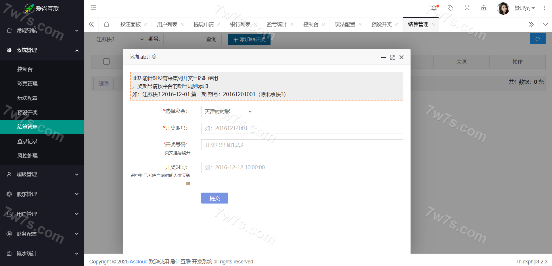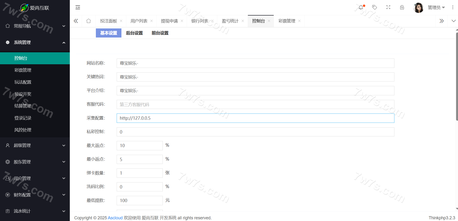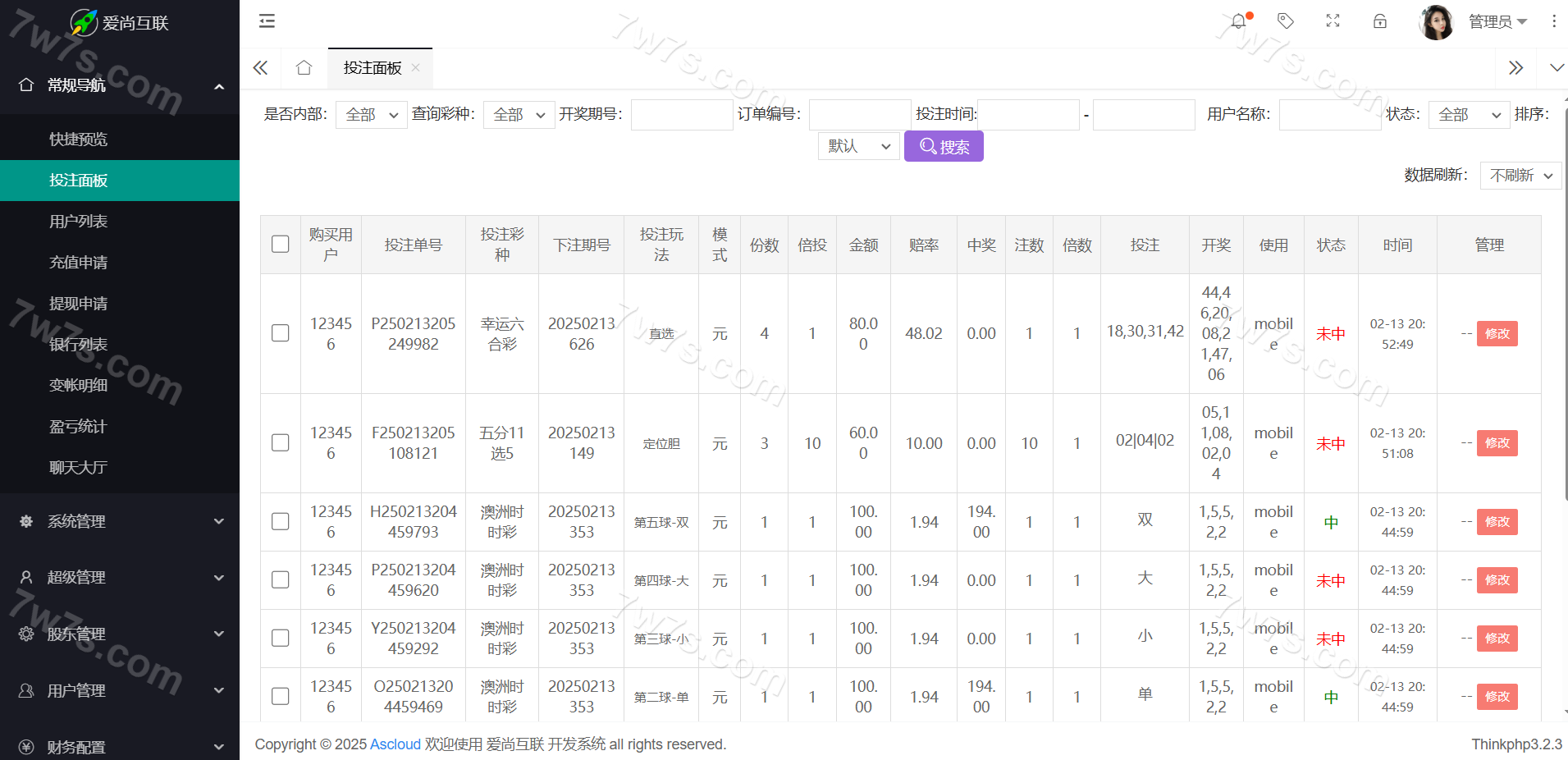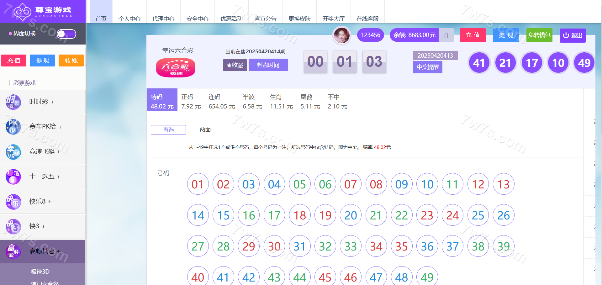 大富彩票尊宝娱乐整站,带真人娱乐/带手机版自适应 信用盘/双面盘玩法,后台支持自动风控/添加彩种/玩法/预设开奖/控制/改单 TP框架 PHP语言 全开源可二次开发时时彩源码 本站所有源码都是站长亲测过才上架的,放心购买下载,本站针对会员提供免费搭建服务!